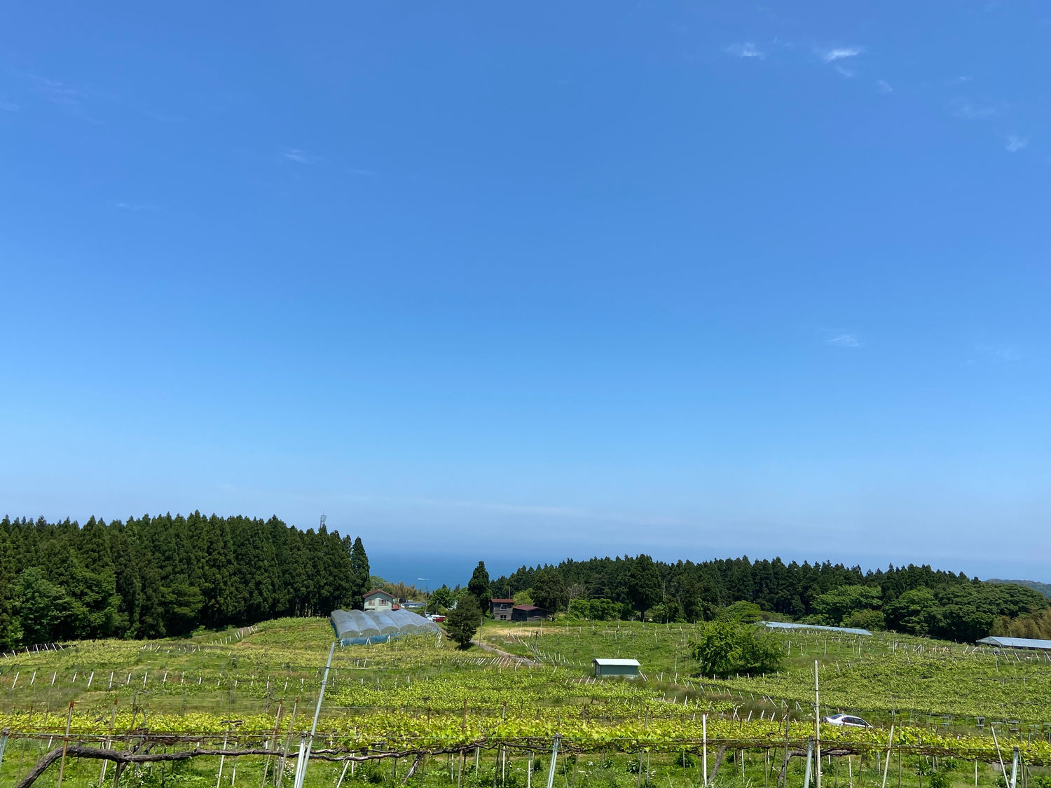 眼下に日本海を望む汐路ぶどう園。
