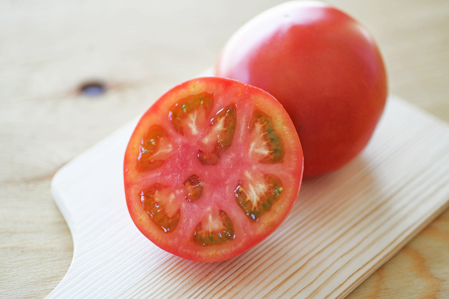 毎年、トマトが育つハウスにリピーターが押し寄せるほどの人気を誇る「樹熟金線トマト」。中央から伸びる放射状の線は、完熟の証です。完熟のしみわたる旨さを体感いただくには、まずは冷やしてガブッとひとかじり!抗酸化作用があるといわれるリコピンの吸収率を上げるために、油を使った加熱調理もおすすめです。熱することで甘みと旨みがさらに増し、美味しく食べるだけで家族の健康と美容をサポートしてくれる頼れる存在!
